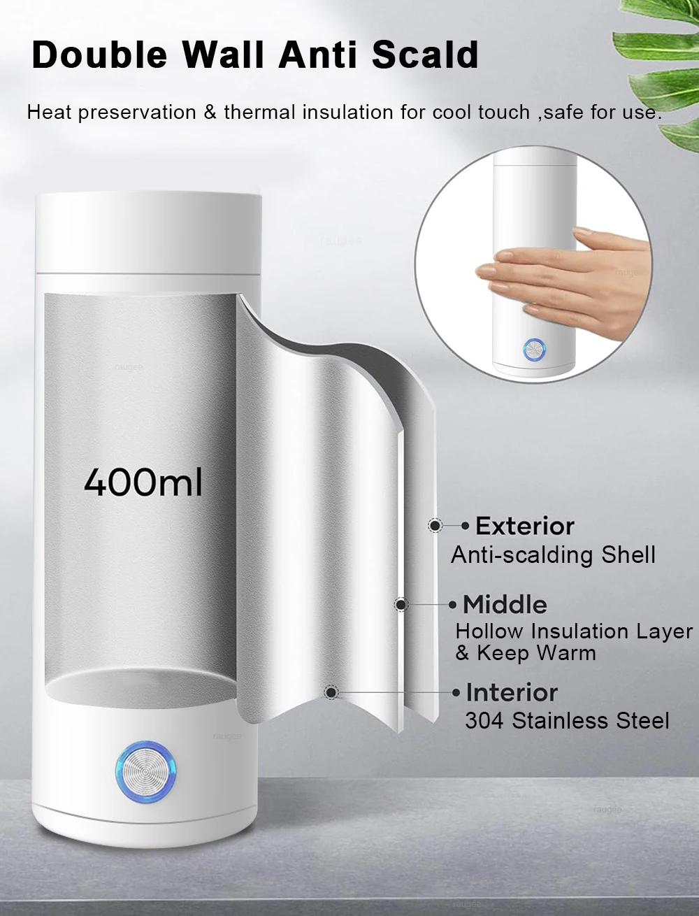 Aquecimento rápido:A chaleira elétrica portátil raugee com alta eficiência de aquecimento de 300 W, adequada para chá preto, café, oolong, chá verde, chá de frutas, etc.Herda todas as características das chaleiras elétricas, térmicas e copos, atendendo a diferentes necessidades.