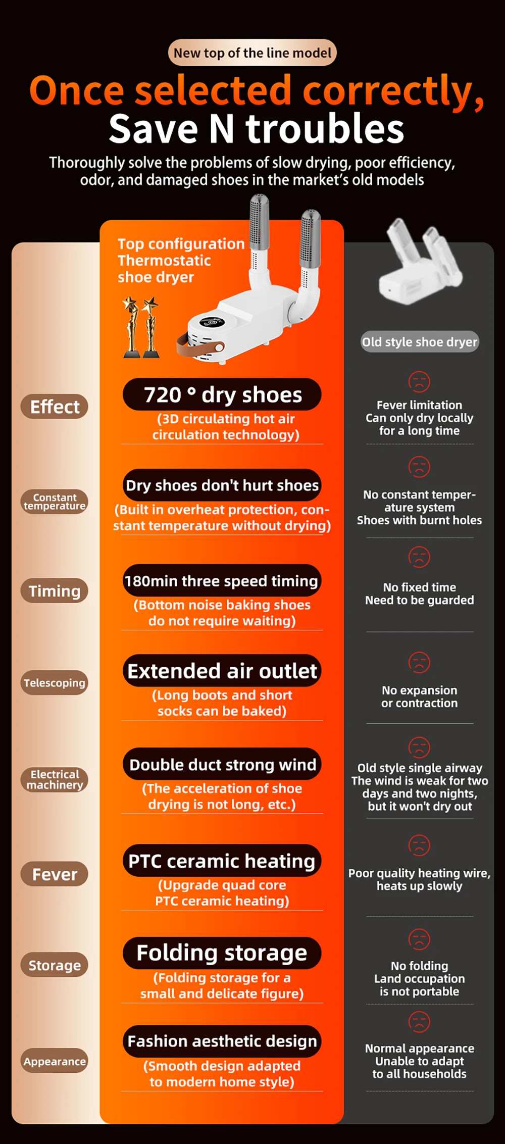 【Eficiência energética】Este secador de sapatos raugee opera com baixo consumo de energia, tornando-o uma escolha ecológica para sua casa.