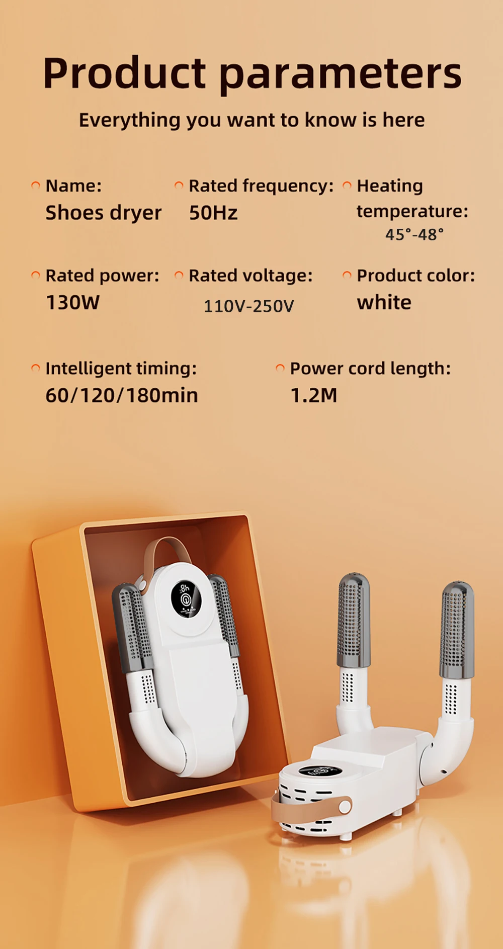 【Fácil de usar】Com sua interface amigável, este secador de sapatos é fácil de operar, garantindo uma experiência descomplicada.