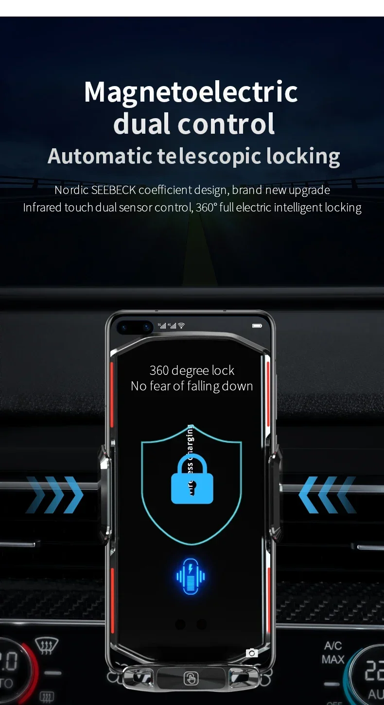 O suporte giratório de 360 graus oferece uma escolha flexível de assistir seu telefone ou GPS enquanto dirige.Isso significa que não haverá visão bloqueada e você poderá obter um ângulo de visão perfeito com o suporte do carregador sem fio para carro.